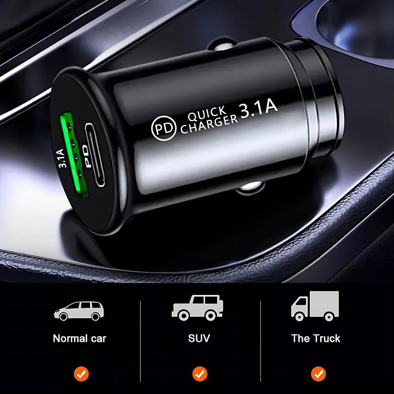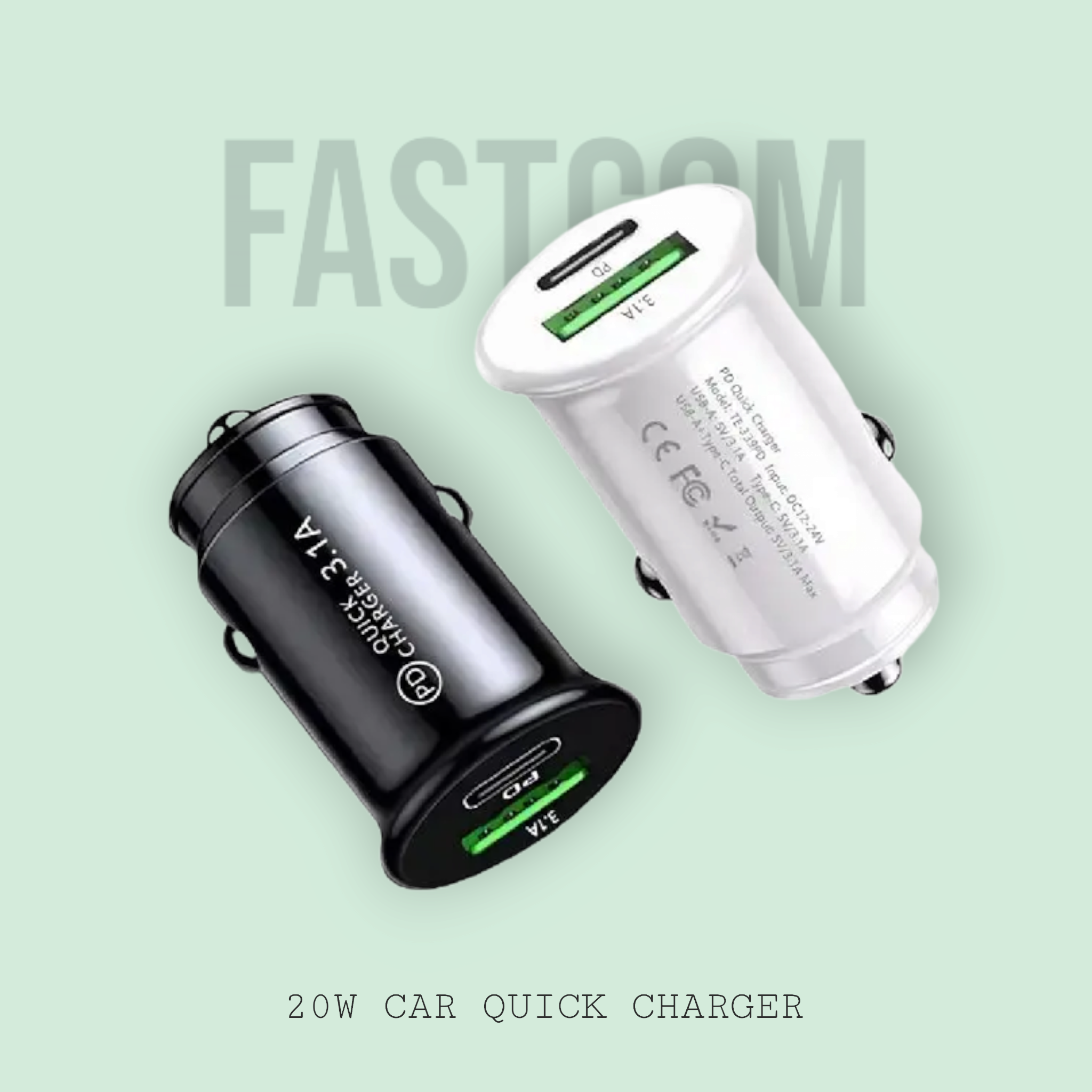- The Fastcom 20W USB-C and USB-A Car Charger, an ideal companion for your active lifestyle. With this charger, you can continue to charge your devices without the need to remove them from their cases. It’s perfect for outdoor activities and travel, offering convenience wherever you go. Not only is it lightweight, but it also boasts a stylish design.
